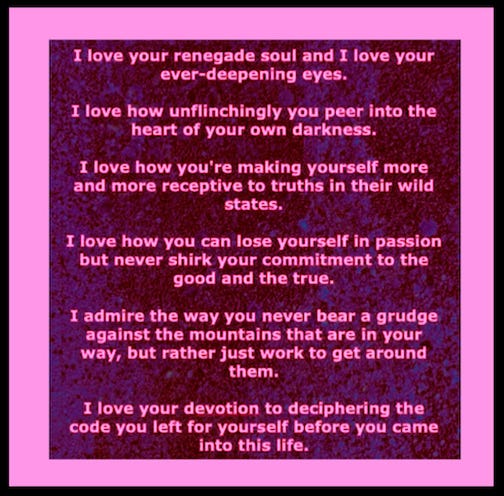 In other words, to please me, don’t try to please me. Simply be your out-of-this-world, down-to-earth soul-kissing self, flagrantly igniting the raucous flows of fluidic mutant sparks that sanctify you so abundantly with the quickening of the Rebel Divine.