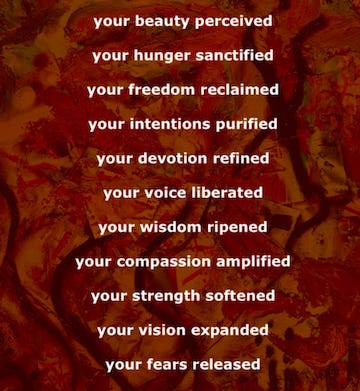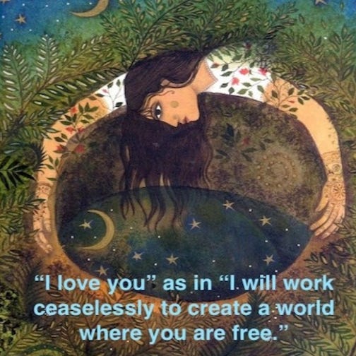 We can play off our mutual primordial respect for each other to help us shed any fearful glitches that might still be tainting our bags of tricks. We can arouse each other to be braver and braver about reinventing the unhealed world with endless uprisings of our liberated imaginations.