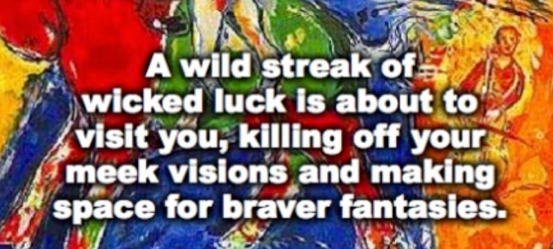 CANCER (June 21-July 22): "If you are going to do something wrong, at least enjoy it," wrote humorist Leo Rosten. I offer his counsel to you right now because I want you to have fun if you wander away from your usual upstanding behavior. But may I make a suggestion? As you depart from normal, boring niceness, please remain honorable and righteous. What I'm envisioning for you are experiments that are disruptive in healthy ways, and dares that stir up interesting problems, and rebellious explorations that inspire beauty and truth. They'll be "wrong" only in the sense of being mutinies against static, even stagnant, situations that should indeed be prodded and pricked. Remember Bob Dylan's idea: "To live outside the law, you must be honest."
