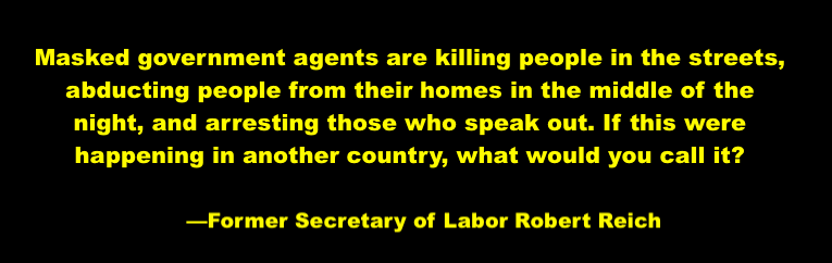 Thirty-seven-year-old poet and mother of three children Renee Nicole Good was murdered by a masked, cursing ICE agent. It was yet another in a series of tragic atrocities perpetrated by Trumps’ gang of thugs.