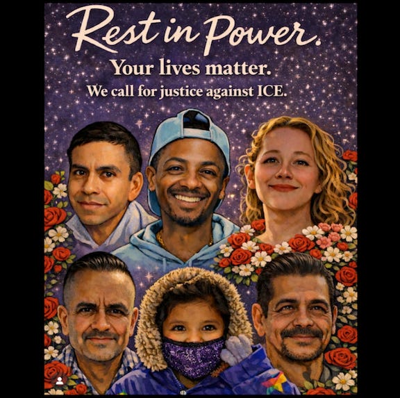 Thank you for this reminder. The grief is real. I numbed out for a while, overwhelmed, tired of it all. But Renee’s murder hit me deep. My anger was simmering all along, but over the past day I have been crying, allowing myself to feel really feel the sadness I have for my country & for everyone this cruel & heartless administration is hurting. But with this new depth of feeling comes motivation to take action—