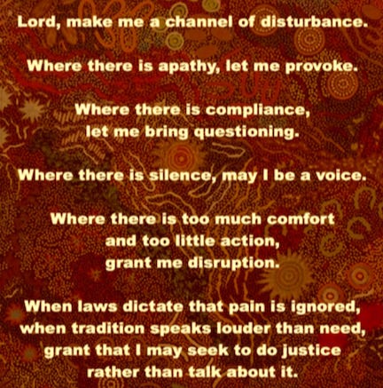The author of the above prayer is Alan Paton, South African activist and author of Cry, the Beloved Country. Art by Michelle Possum Nungurrayi.