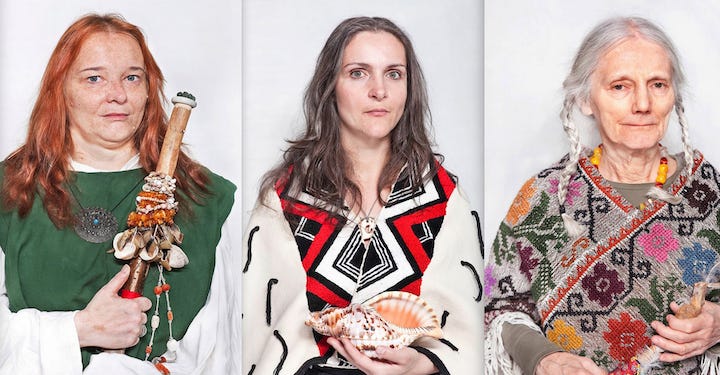 The Polish women appear as people who have ongoing relationships with forces larger than themselves. Their faces and bodies show evidence that they’ve been in the service of healing, ceremony, and sustained interplay with the numinous. There’s an inwardness that paradoxically radiates outward.