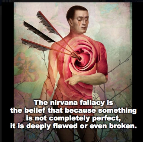 “The nirvana fallacy is the belief that because something is not completely perfect, it is deeply flawed or even broken. It is very common in economic and political discourse.