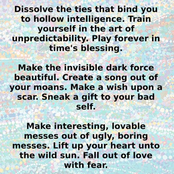 • outrageous goodness that inspires you to experiment with boisterous empathy;