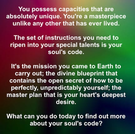 Hillman’s entire book, The Soul’s Code: https://tinyurl.com/LiveYourSoulCode